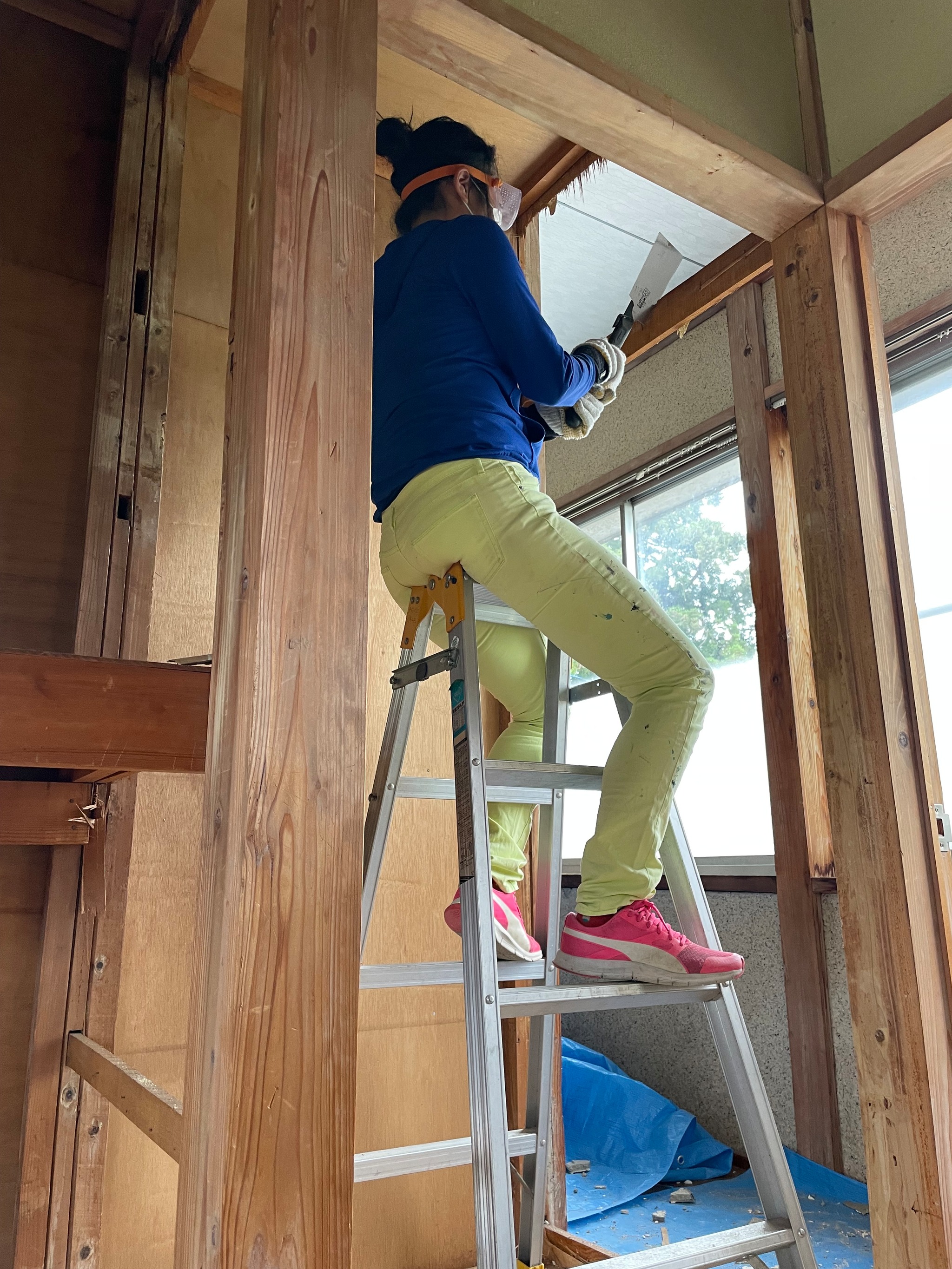 Cutting wood, rebuilding the floor, learning as I go.