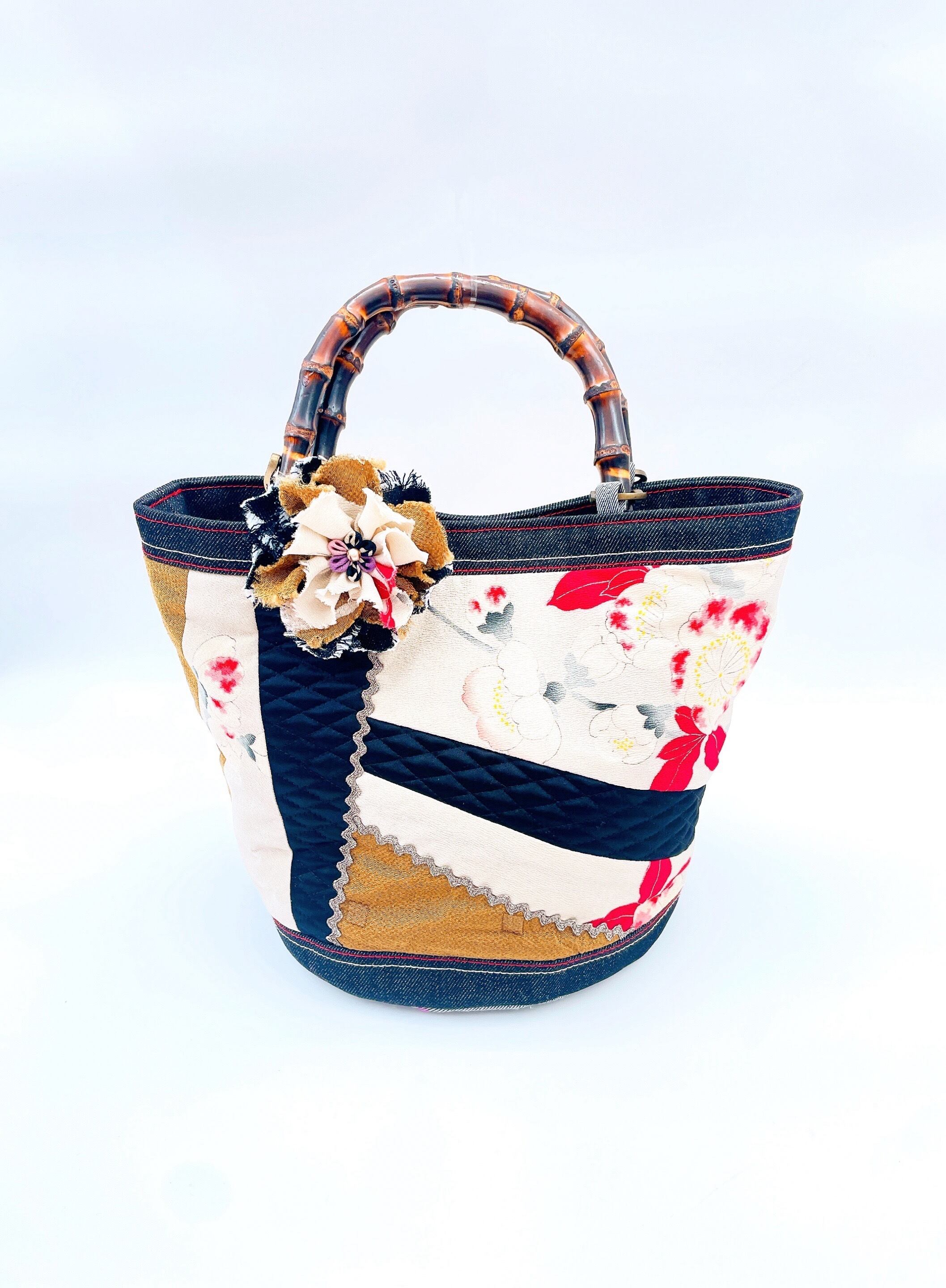 筒型バック〔竹〕(薄グレー✖️花柄)