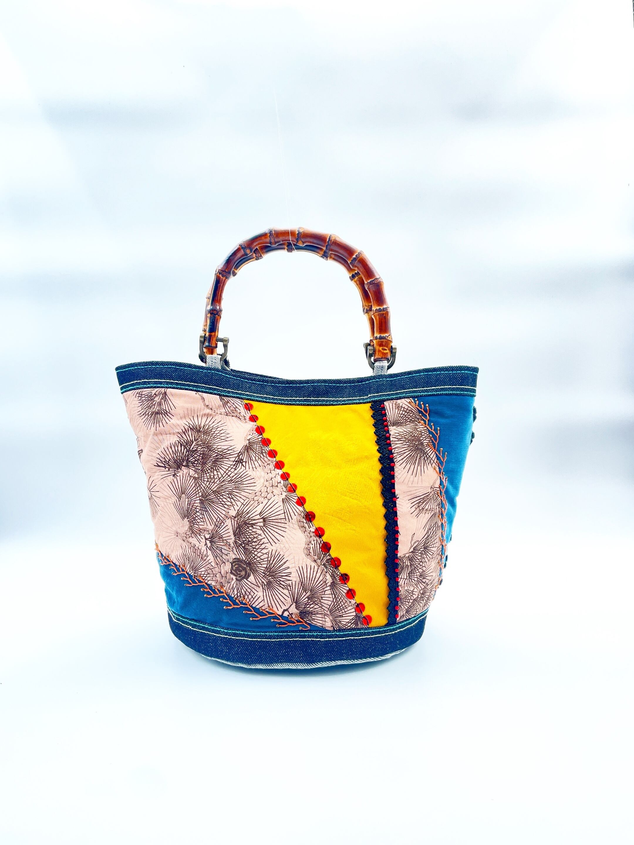 アンティーク着物×デニムのバック。