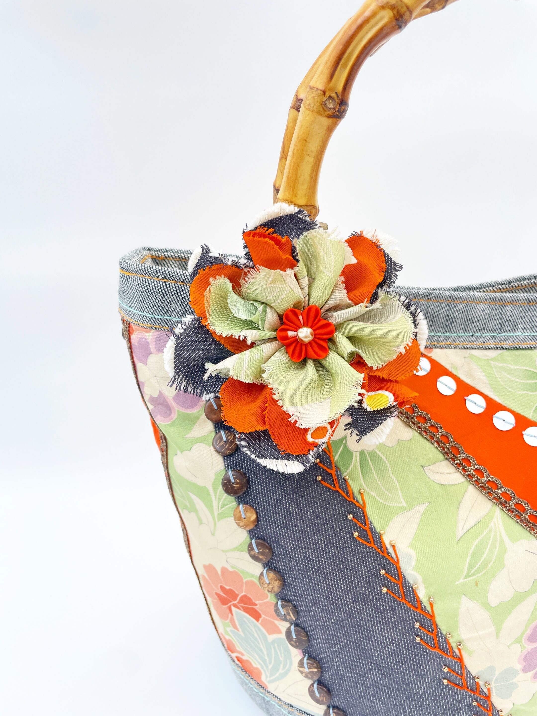 アンティーク着物×デニムのバック。